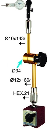 - Statyw magnetyczny przegubowy do czujników zegarowych z zaciskiem mechanicznym , wyposażony w przegubowe ramię oraz precyzer przy uchwycie do czujnika