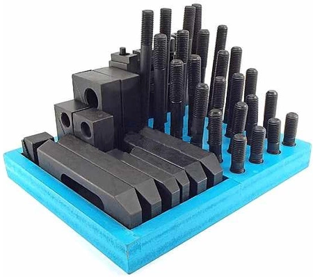 Profesjonalny zestaw elementów mocujących M20/22 mm do frezarki i wiertarki, przeznaczony do stołów z rowkami teowymi T. Zawiera 58 elementów, które umożliwiają szybkie, stabilne i bezpieczne mocowanie detali oraz uchwytów podczas frezowania, wiercenia czy innych operacji obróbczych. Elementy wykonane są z wysokiej jakości stali, ulepszane cieplnie i oksydowane, co gwarantuje długą żywotność i odporność na intensywną eksploatację.